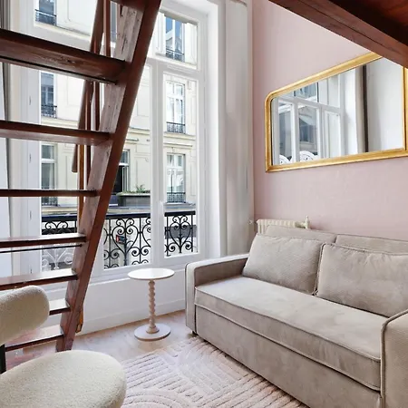 Geniet van een complete keuken in het appartement met een kookplaat voor uw gemak. Bonne Nouvelle metrostation is in de onmiddellijke nabijheid van Duplex elegant en plein centre de Paris Appartement gelegen.